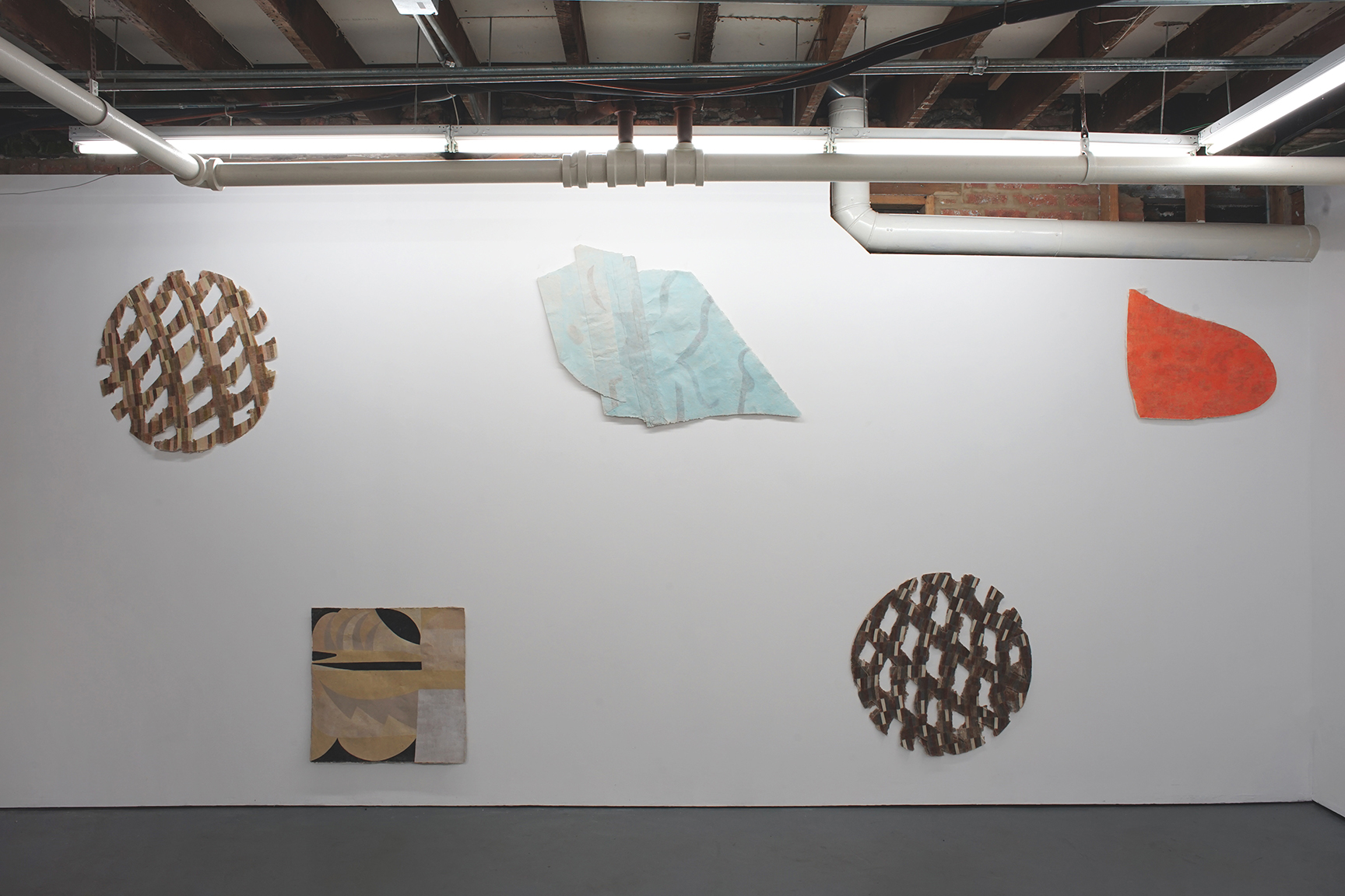 These drawings are built slowly and through layered applications of colored pencil on hand-made paper. Nakamura describes the aesthetic sensibility of these drawings as “magpie,” an attraction to disparate things that compel attention through their distinctiveness or evocative power, and toriawase, a Japanese term referring to the bringing together of varied elements to create a resonant whole.